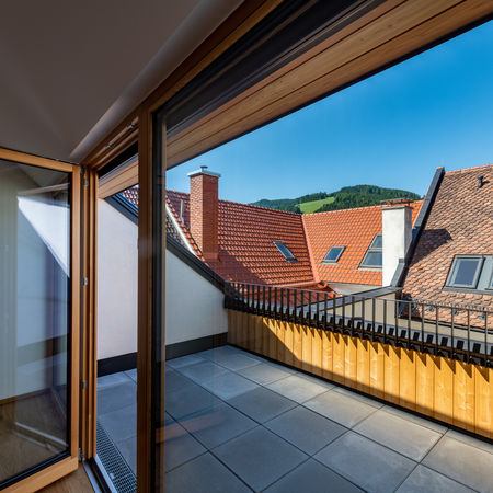 Im TOP 6 kann auf der einen Seite mit dem Hauptplatz der Kern von Obdach betrachtet werden und auf der anderen Seite kann auf der Loggia Ruhe und Entspannung genossen werden.